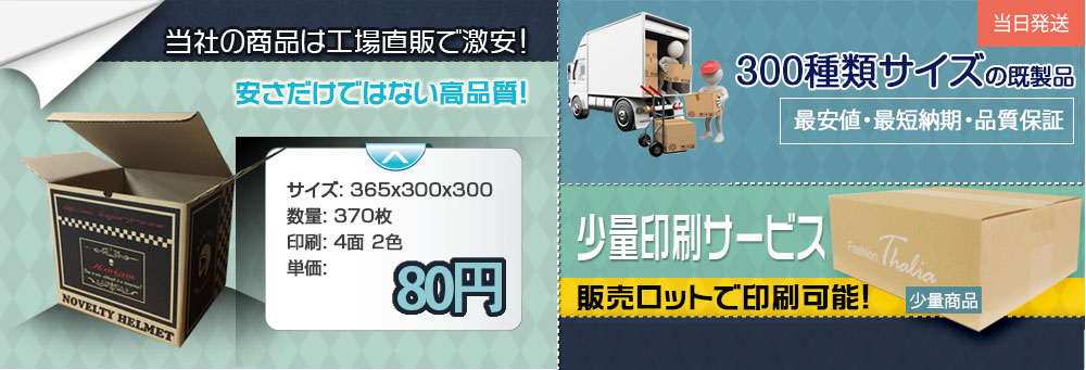 ※ダンボール箱・化粧箱・紙管関連商品につきましては梱包した1箱ごとに配送料がかかります。