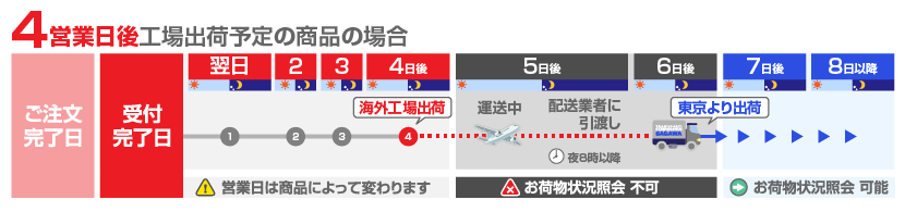 | 中継料発生地域 (送料+中継料) | 地理的都合上の一部地域(中継料発生地域タップをご確認ください。) 送料と別途に中継料が発生します。 ※送料が無料の場合でも中継料は別途発生します。 |