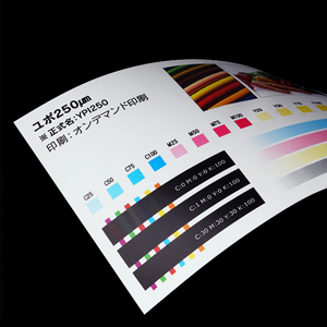 ※ 折り加工(機械での折り作業)は、 弊社の製作工程上、紙の厚さが110kg・135kgの用紙のみ可能です。 折り目部分にべタや平網、濃い色のデザインが入る場合、ひび割れ(背割れ)が目立つ場合がありますので予めご了承ください。