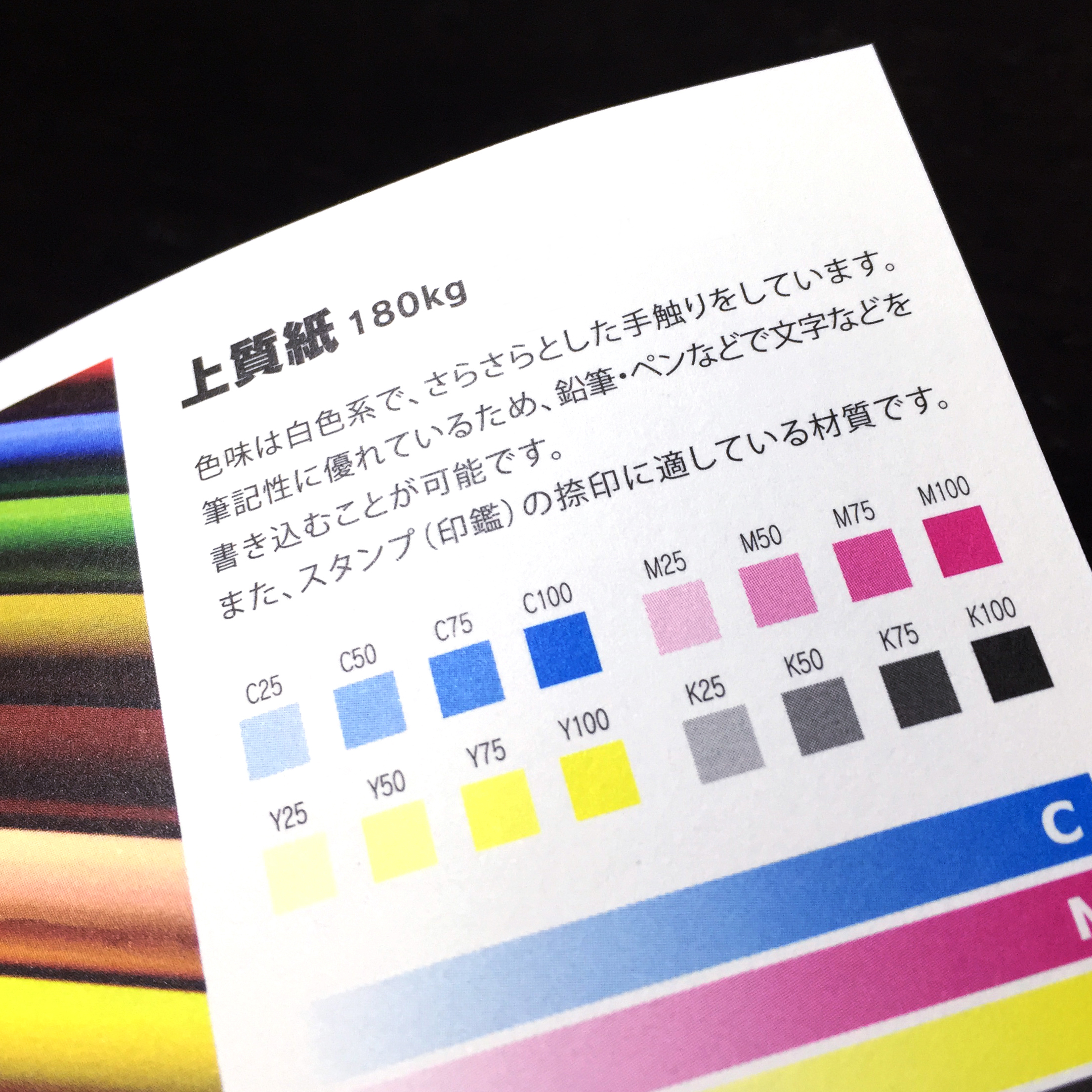 ※ 折り加工(機械での折り作業)は、 弊社の製作工程上、紙の厚さが110kg・135kgの用紙のみ可能です。 折り目部分にべタや平網、濃い色のデザインが入る場合、ひび割れ(背割れ)が目立つ場合がありますので予めご了承ください。